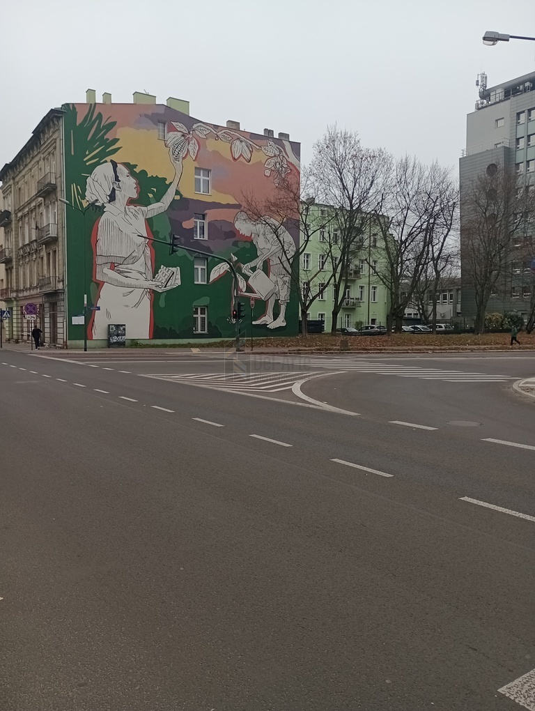 Kamienica z 1896 roku małżonków Juliusza i Emilii Ekkart. Na ścianie kamienicy frontowej - Czekoladowy Mural " PLANTACJA KAKAOWCA ".
